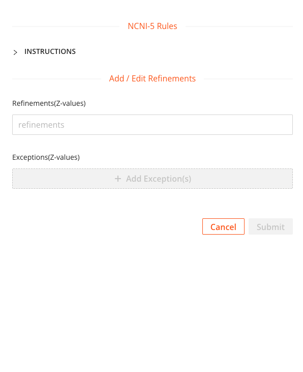 When creating a new rule, a user could input a Z-value (a product ID that is appended to a URL) to match. This was a broad match, so any Z-values that contained the string would be no-indexed (which allowed us to create rules for broad categories rather than use massive lists of Z-values). Exceptions to the matching logic could also be used (exact match) to exclude those product pages from receiving the no-index tag.