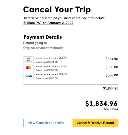 Our primary dependency would be on the platform (internal systems) team building automation for cancelling a reservation and an API via which external systems could initiate a cancellation. We worked closely with the platform team to ensure that the API would provide everything Trip Manager would need to 1) check a reservations’ cancellation policy to see if eligible for cancellation and any refund amount, 2) cancel the reservation, 3) receive success confirmation along with payment details to display to guests on confirmation page and in confirmation email.